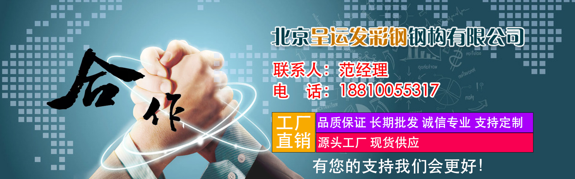 北京呈運發(fā)彩鋼鋼構有限公司是集鋼結構、彩鋼板設計、生產、加工、制造、銷售、安裝工程為一體綜合性企業。擁有鋼結構和彩鋼夾芯復合板的自動化生產流水線,各種型號彩鋼.壓型鋼板的壓型機,C.Z型鋼,鋼筋桁架樓承板等產品生產設備。